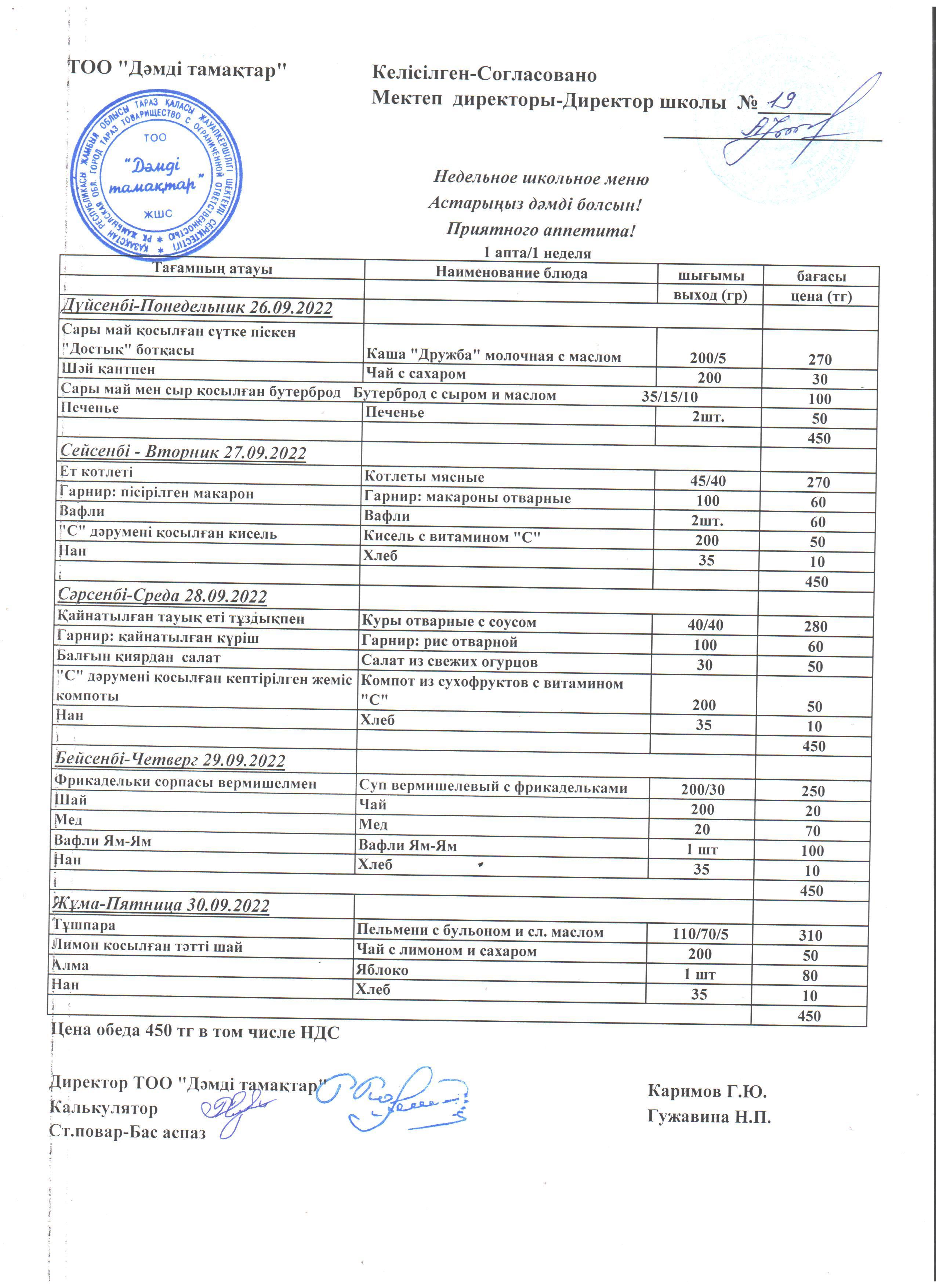 » Ас мәзірі 26.09.2022-30.09.2022 жж