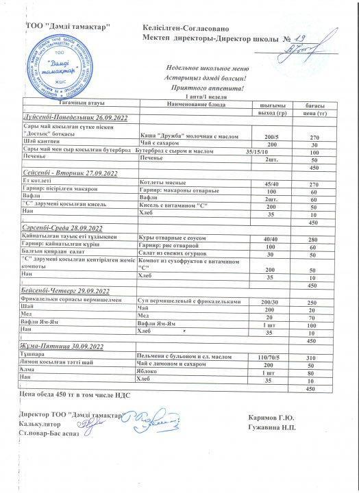 Ас мәзірі 26.09.2022-30.09.2022 жж » СШ №19