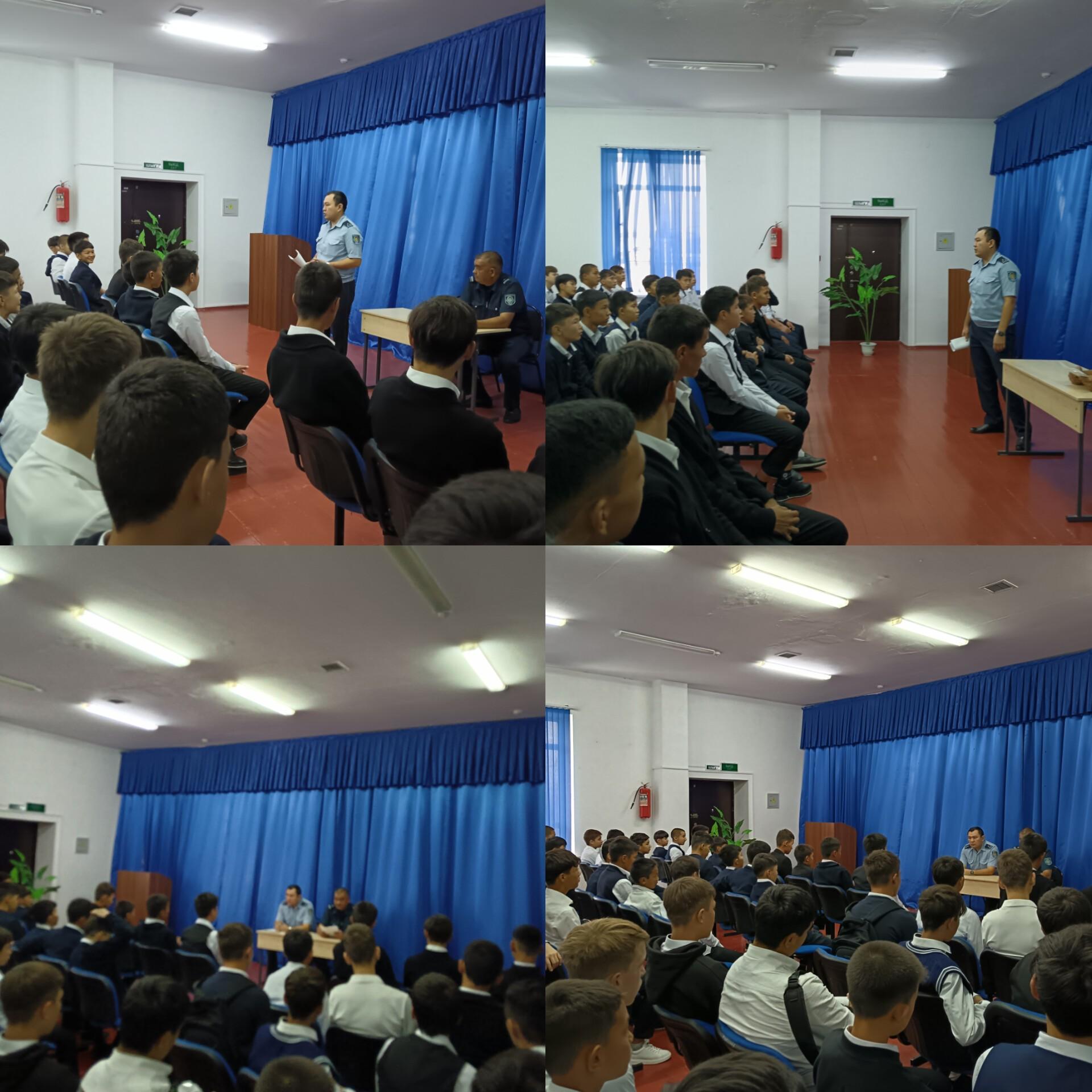 2025 жылдың 16 қыркүйек күні Тараз қаласы 2 ПБ полиция аға лейтенанты Ә.Т.Әсетов 8-11 сынып оқушыларына Қазақстан Республикасының «Әкімшілік құқық бұзушылық» туралы Кодексінің келесі баптарын естеріне салып, жауапкершілік туралы ескертті. Әлімж