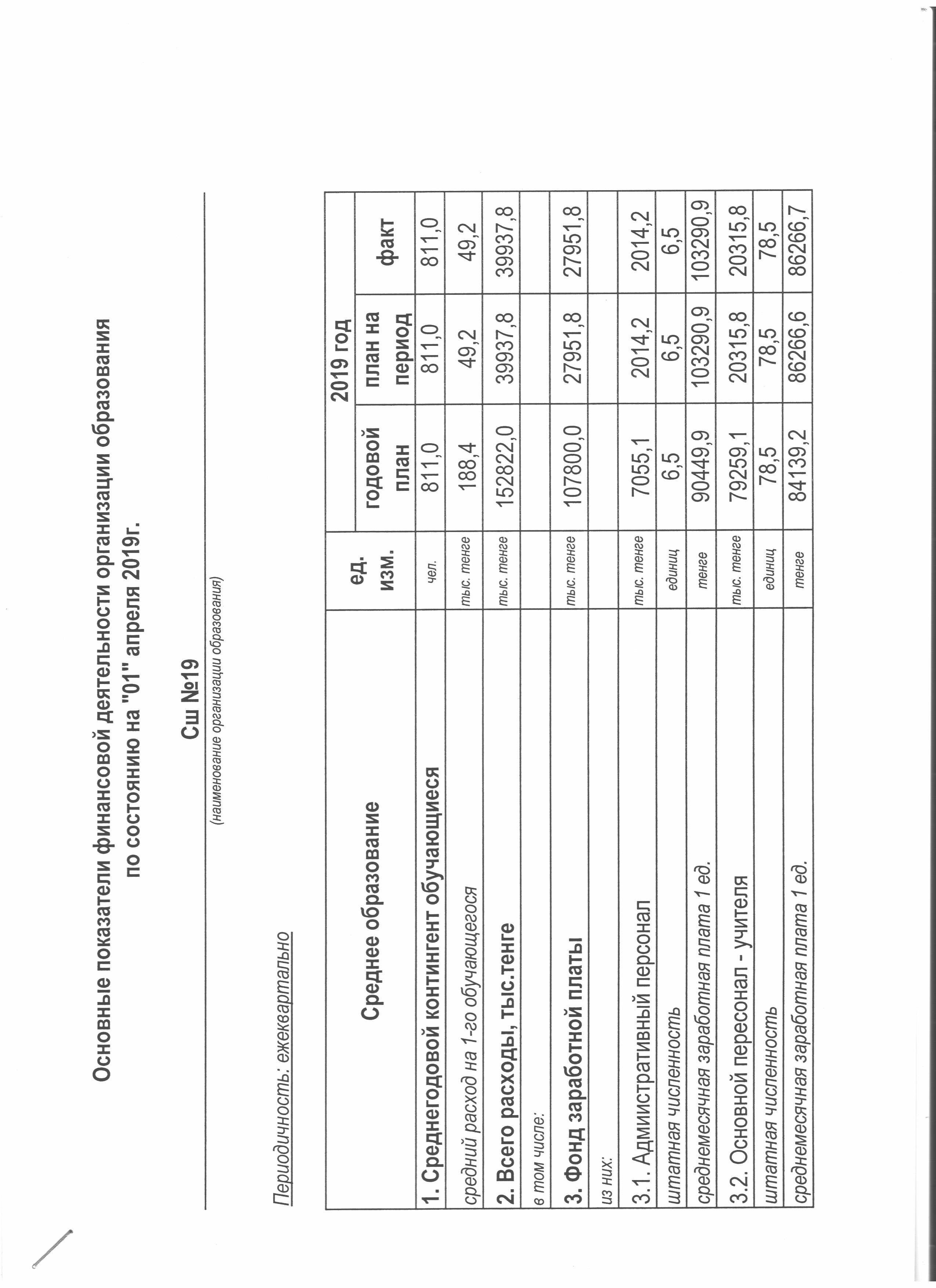 Қаржылық қызметтің негізгі көрсеткіштері » СШ №19
