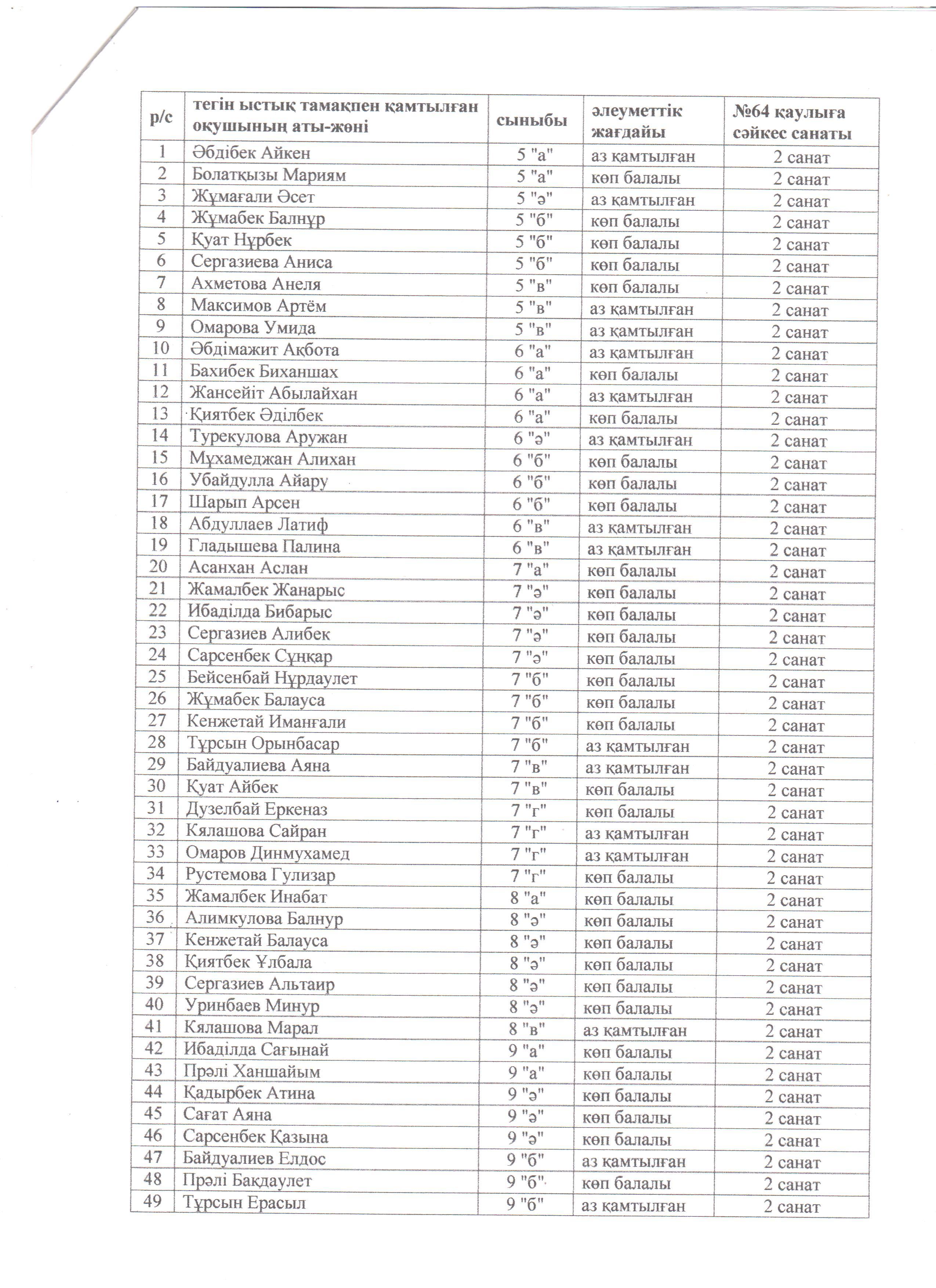 СШ №19 » Тамақтандыру » 2024-2025 оқу жылында жекелеген санаттағы білім алушыларды тегін ыстық тамақпен қамту туралы №489 бұйрық 2.09.2024 ж.