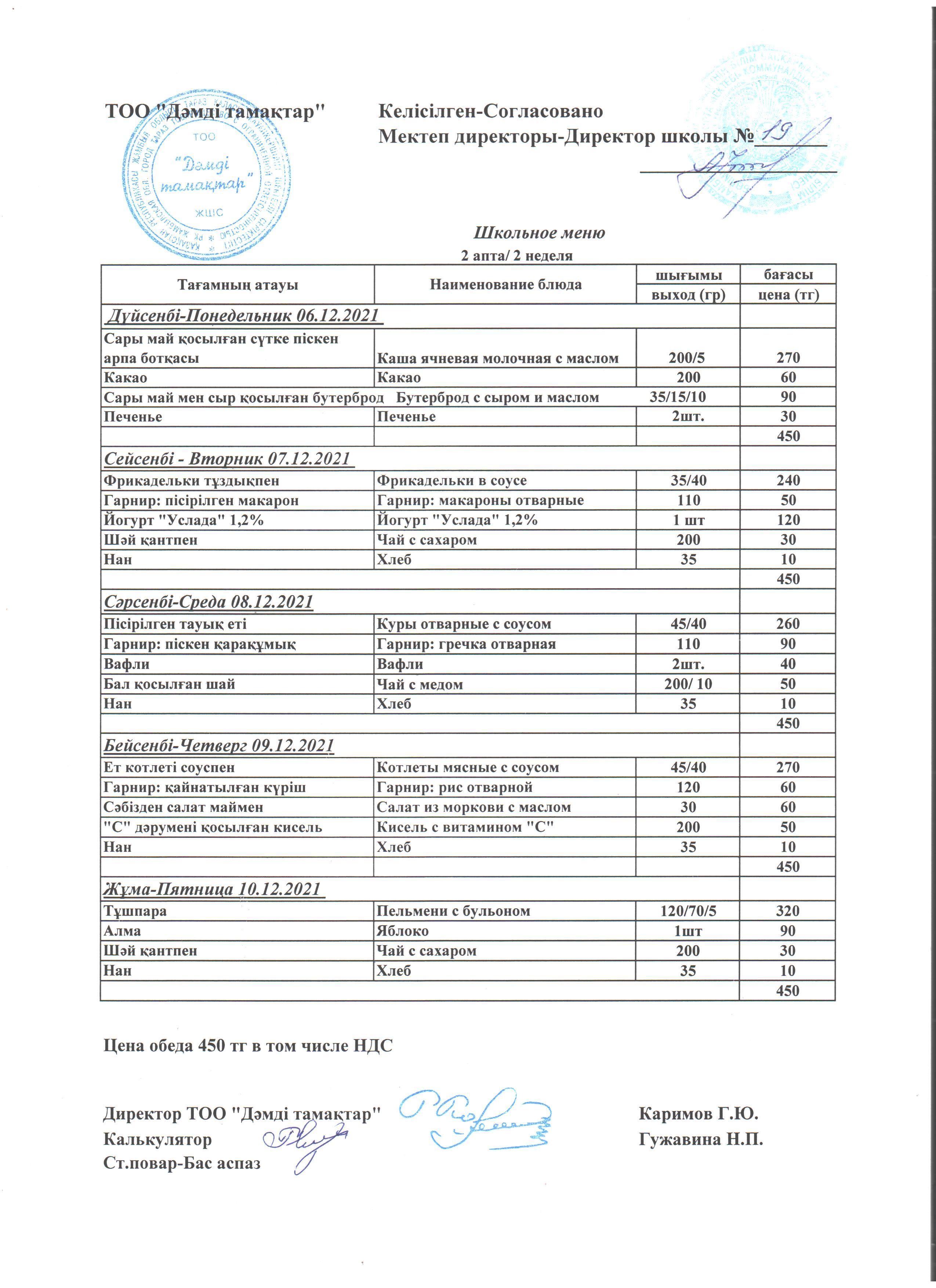 Ас мәзірі 06.12.2021-10.12.2021 » СШ №19