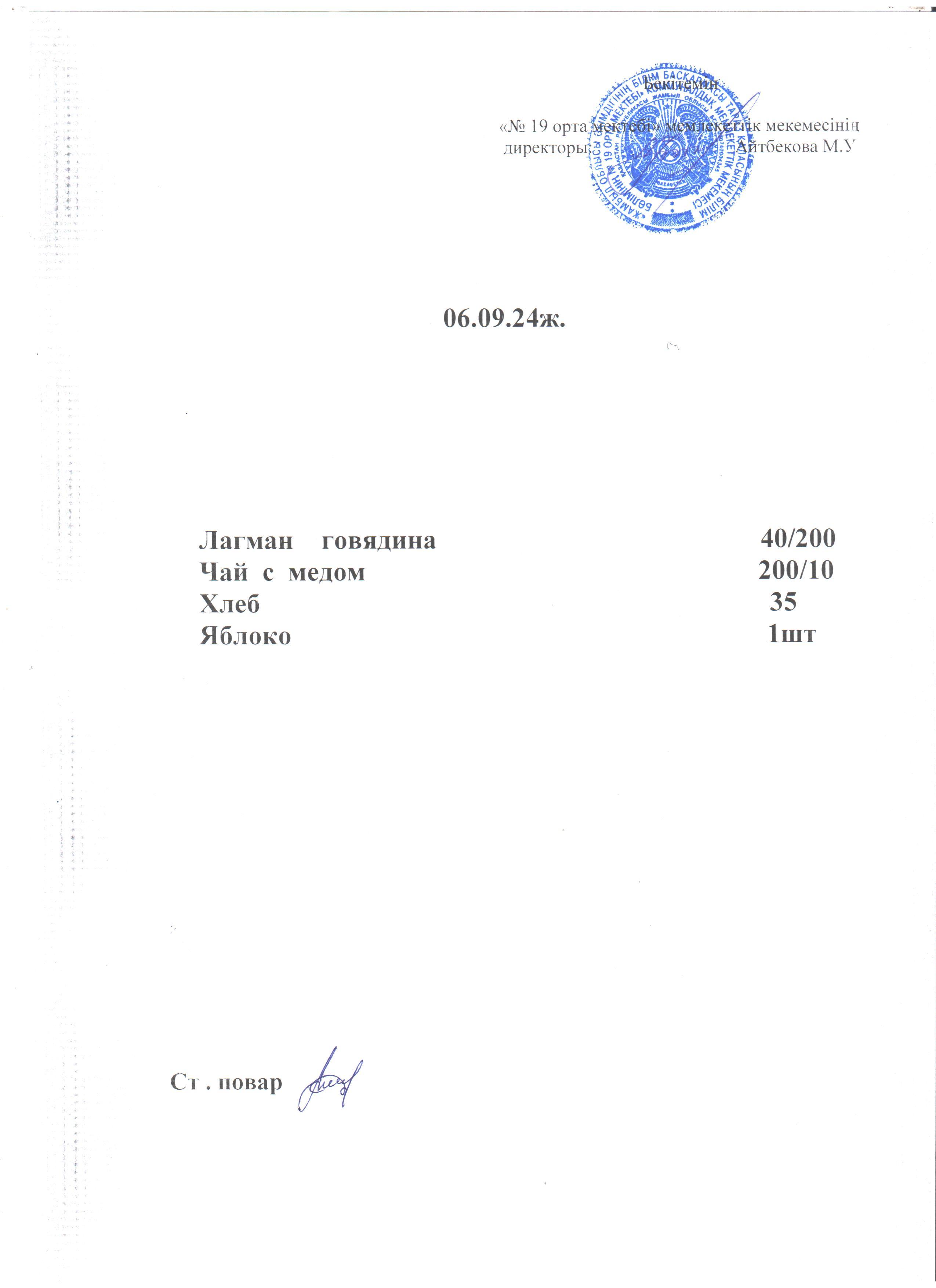 Күндік ас мәзірі 6.09.2024 ж. » СШ №19