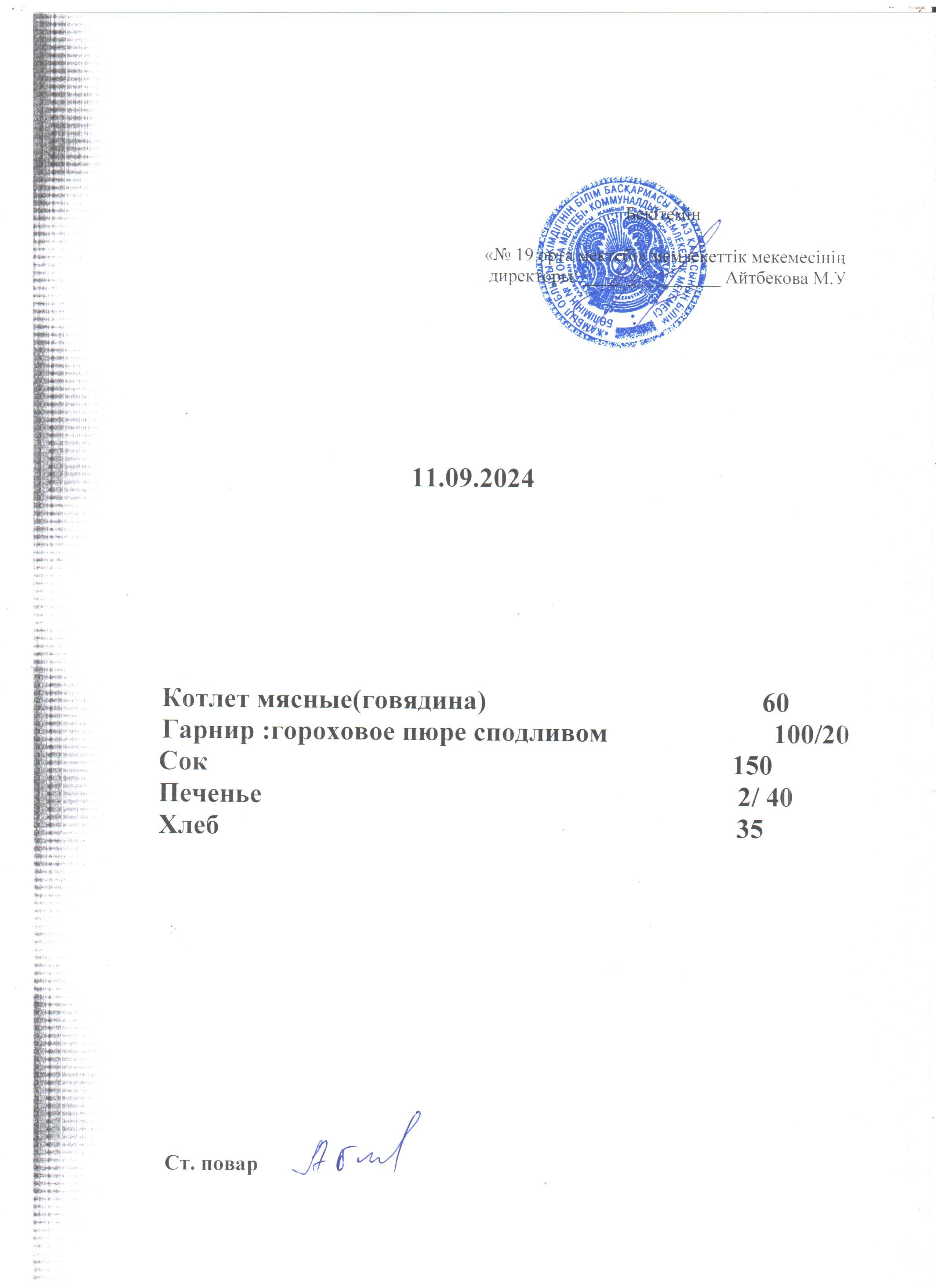 Күндік ас мәзірі 11.09.2024 ж. » СШ №19