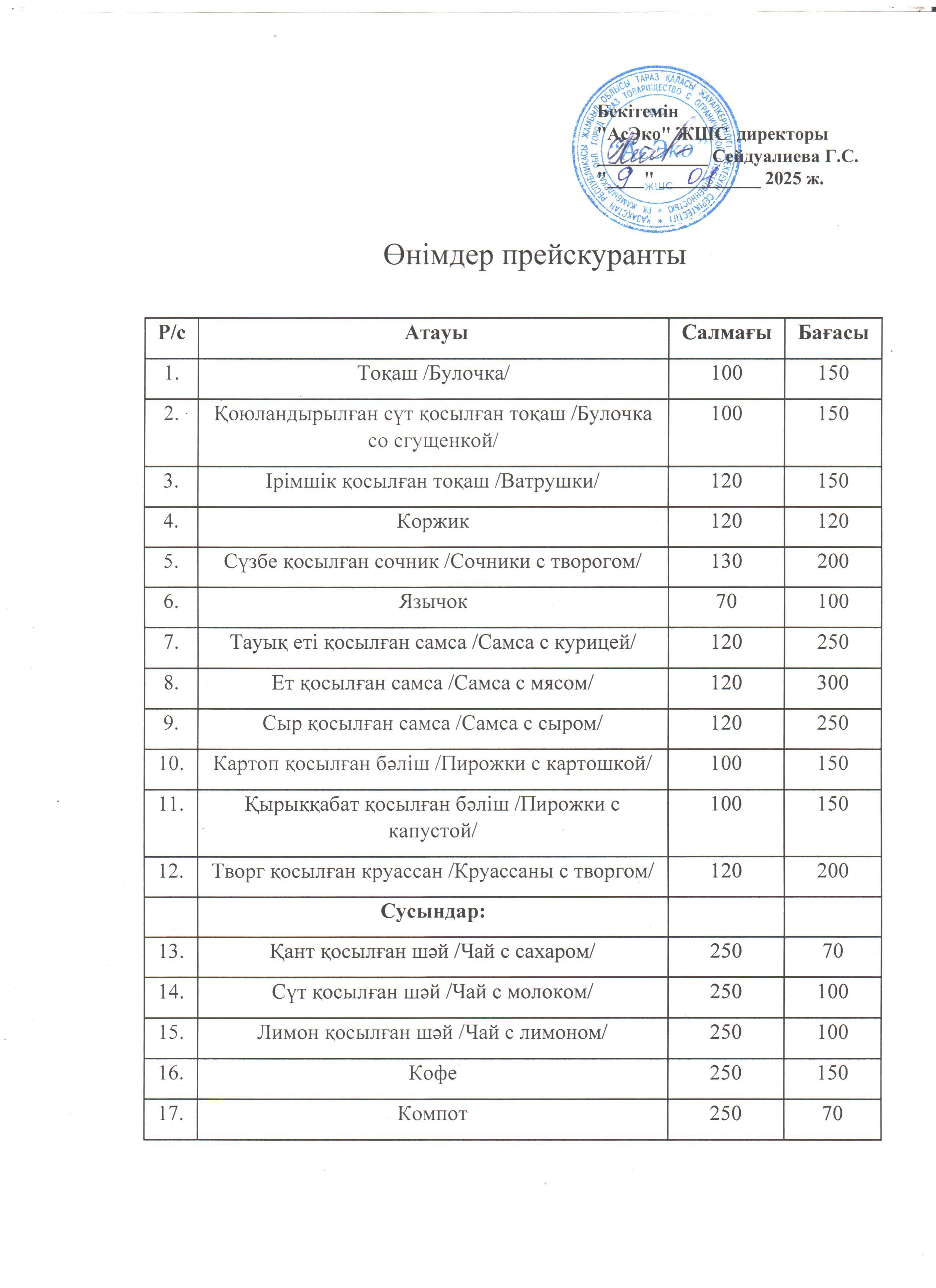» » » Өнімдер прейскуранты