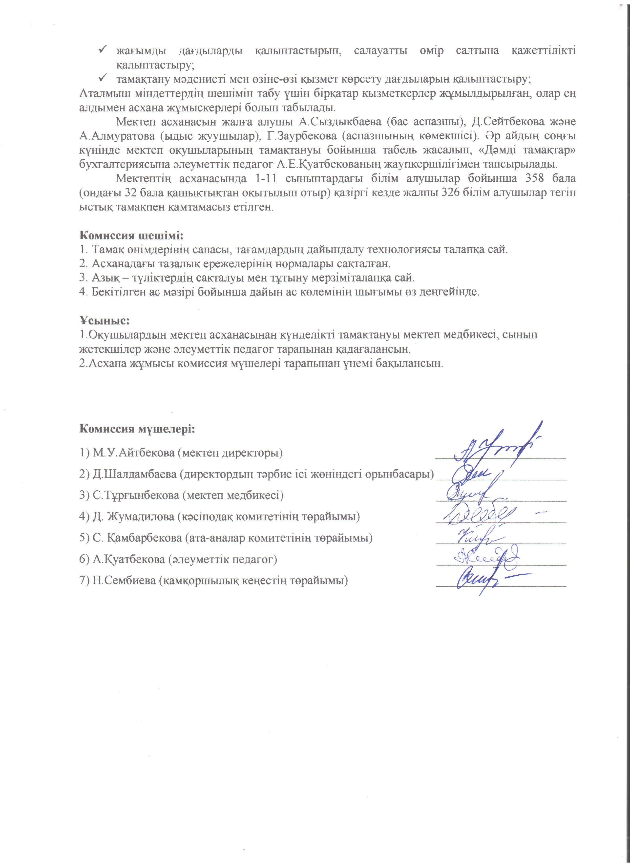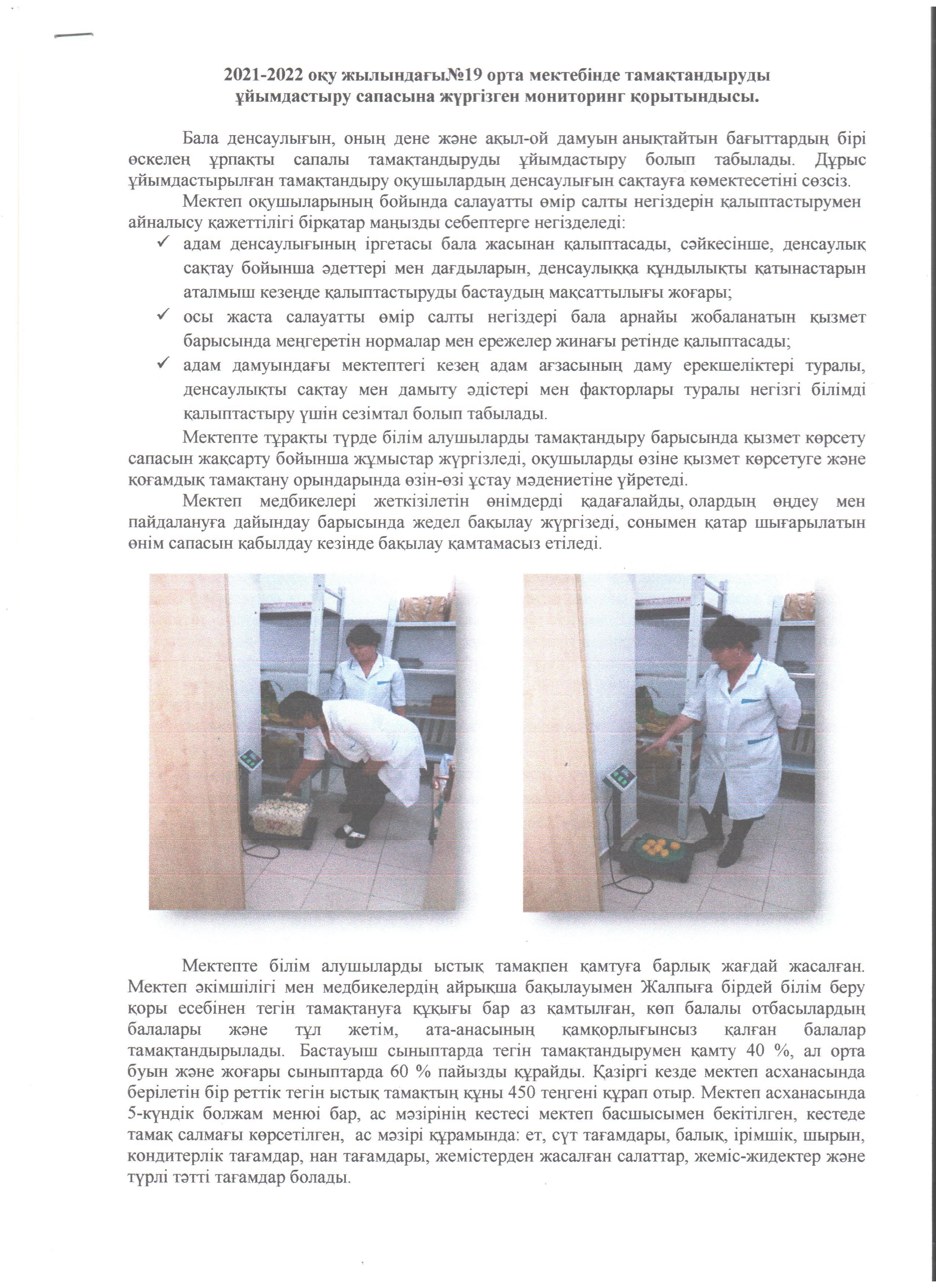 11 октябрь 2021 0 1 2 3 4 5 2021-2022 оқу жылындағы тамақтандыруды ұйымдастыру сапасына жүргізілген мониторинг қорытындысы