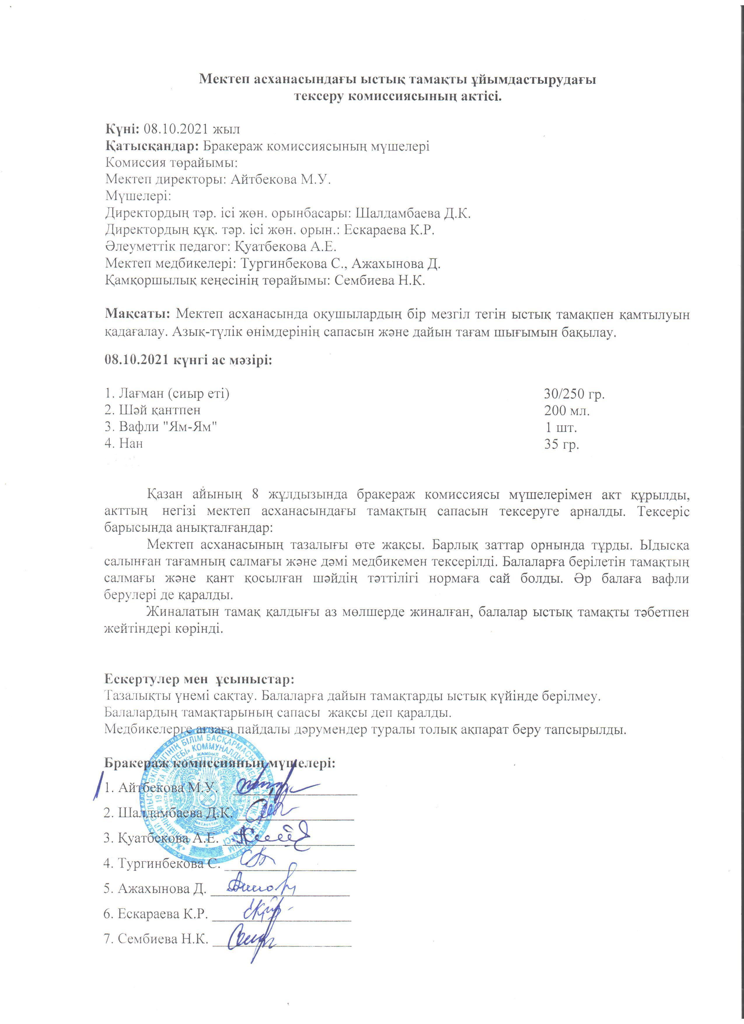 08 октябрь 2021 0 1 2 3 4 5 Мектеп асханасындағы ыстық тамақты ұйымдастырудағы тексеру комиссиясының актісі