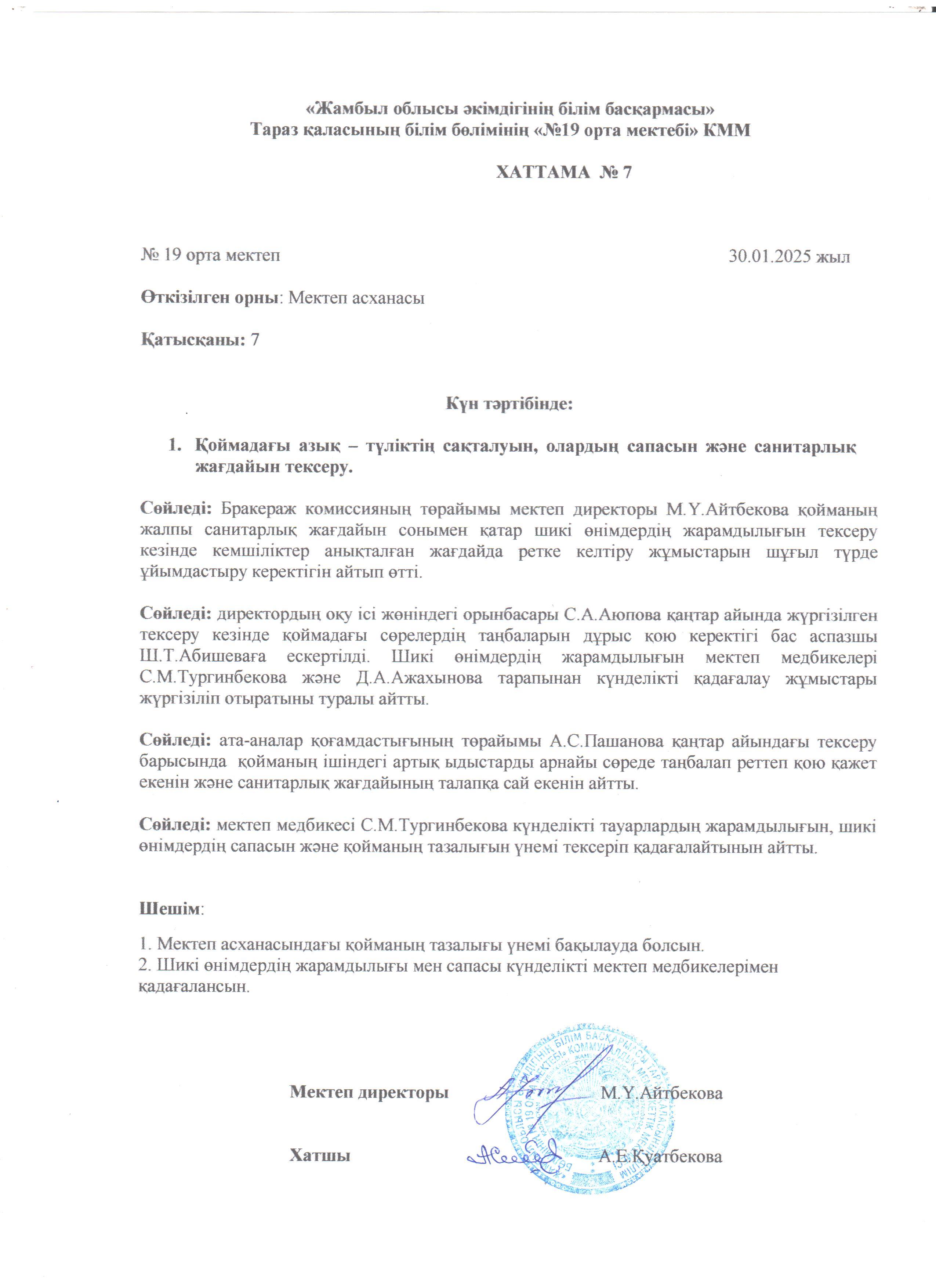 Бракераж отырысының хаттамасы №7 » СШ №19