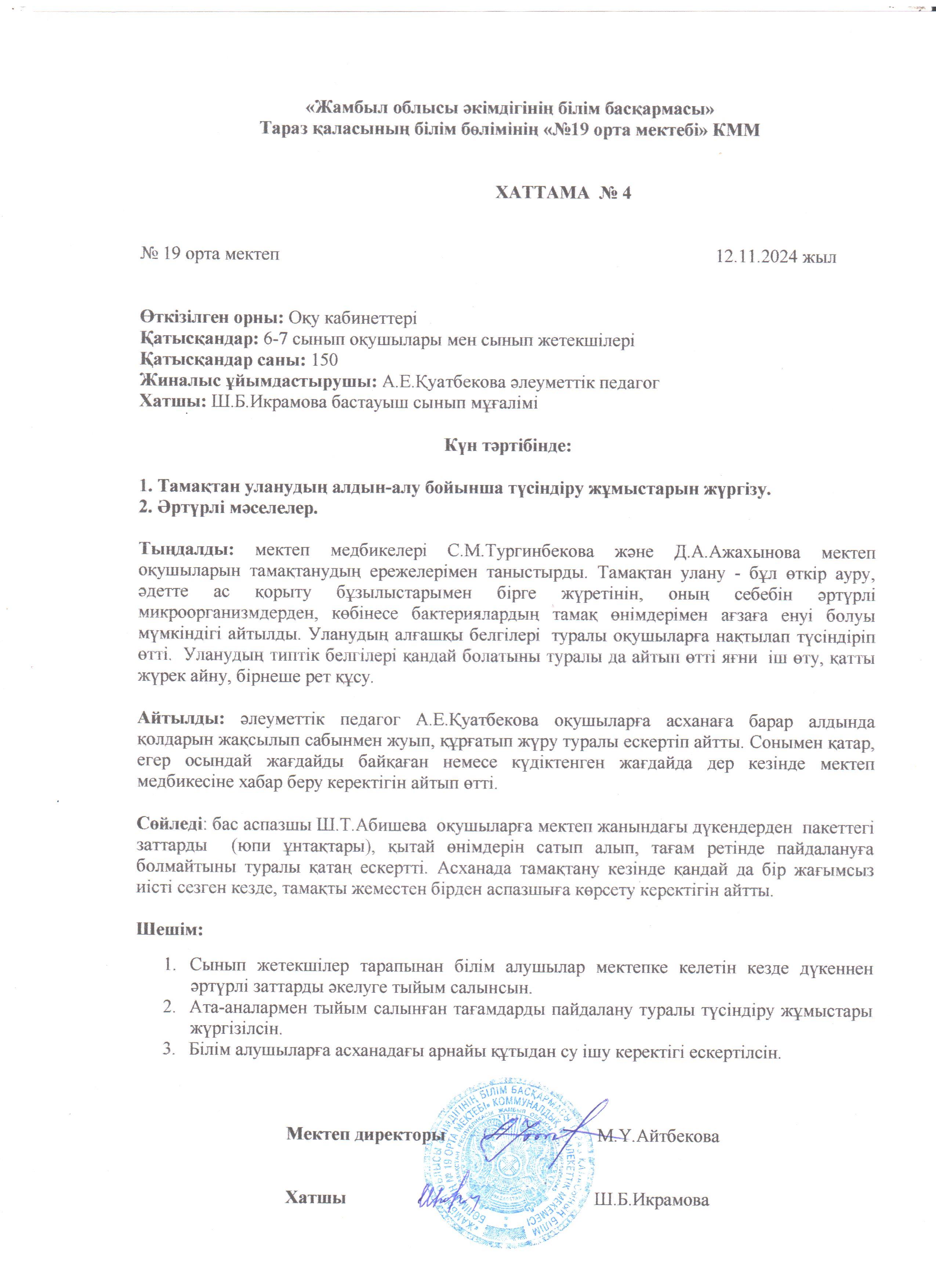 Тамақтан уланудың алдын алу бойынша түсіндіру жұмыстарының хаттамасы » СШ №19