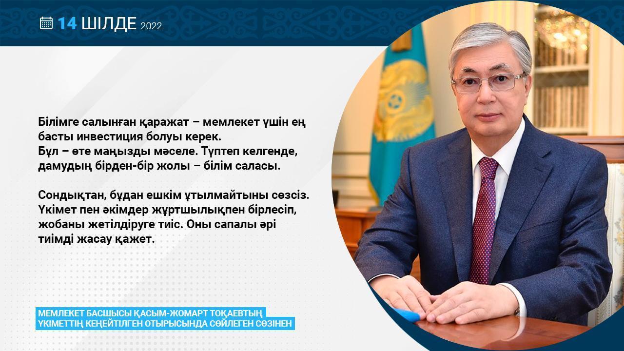 СШ №19 » Ақпарат » Мемлекет басшысы Қасымжомарт Тоқаевтің үкімет отырысында сөйлеген сөзінен