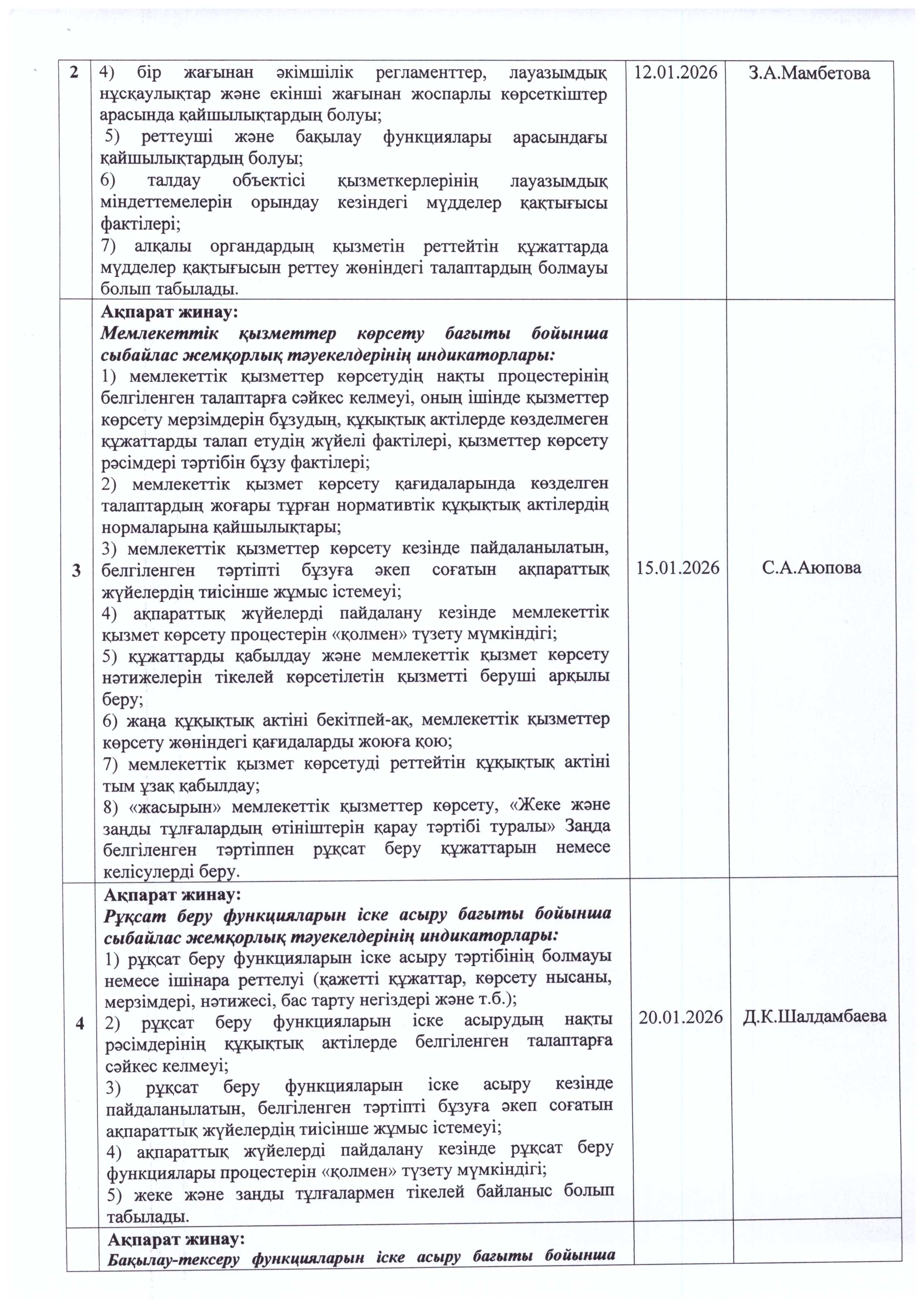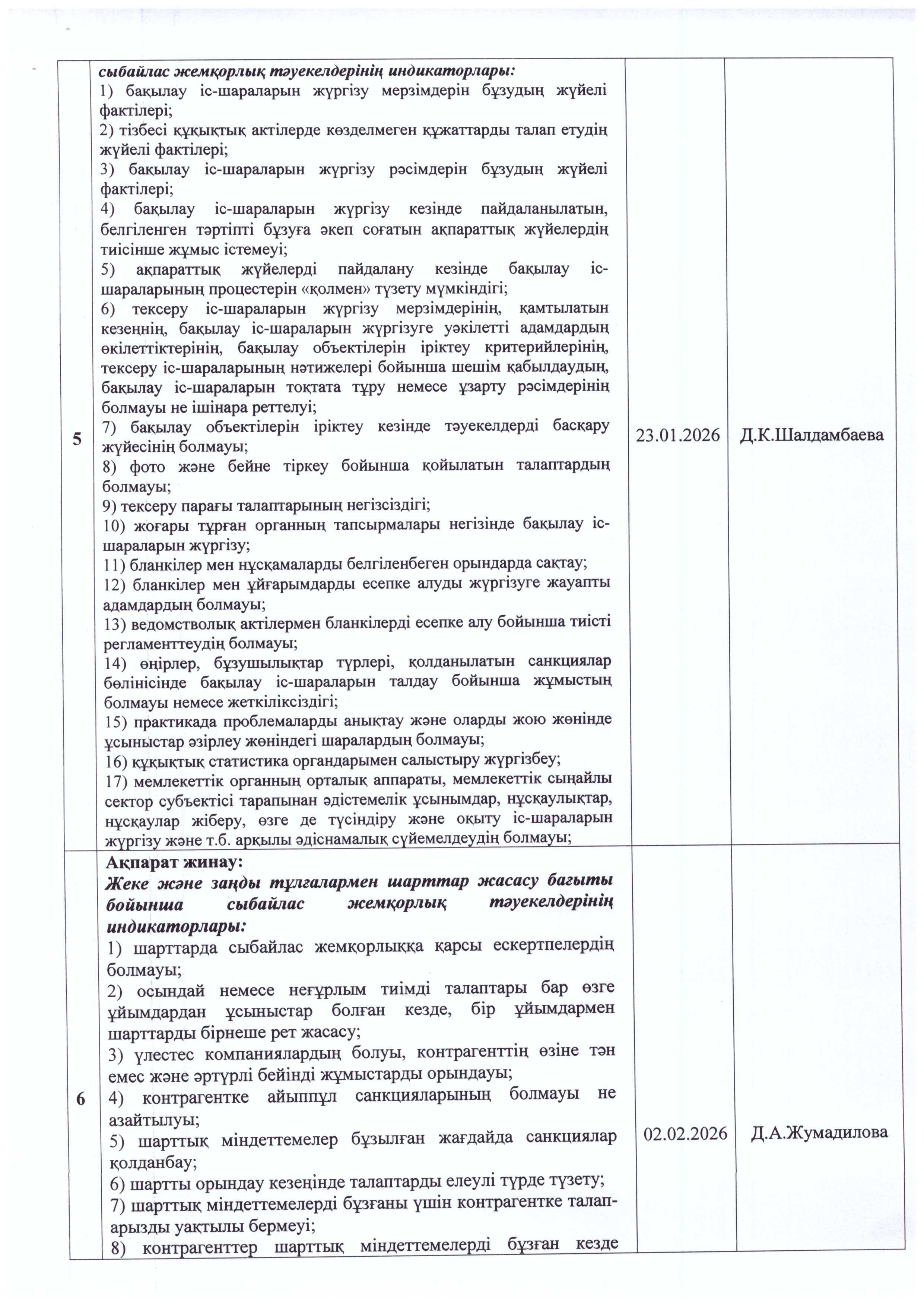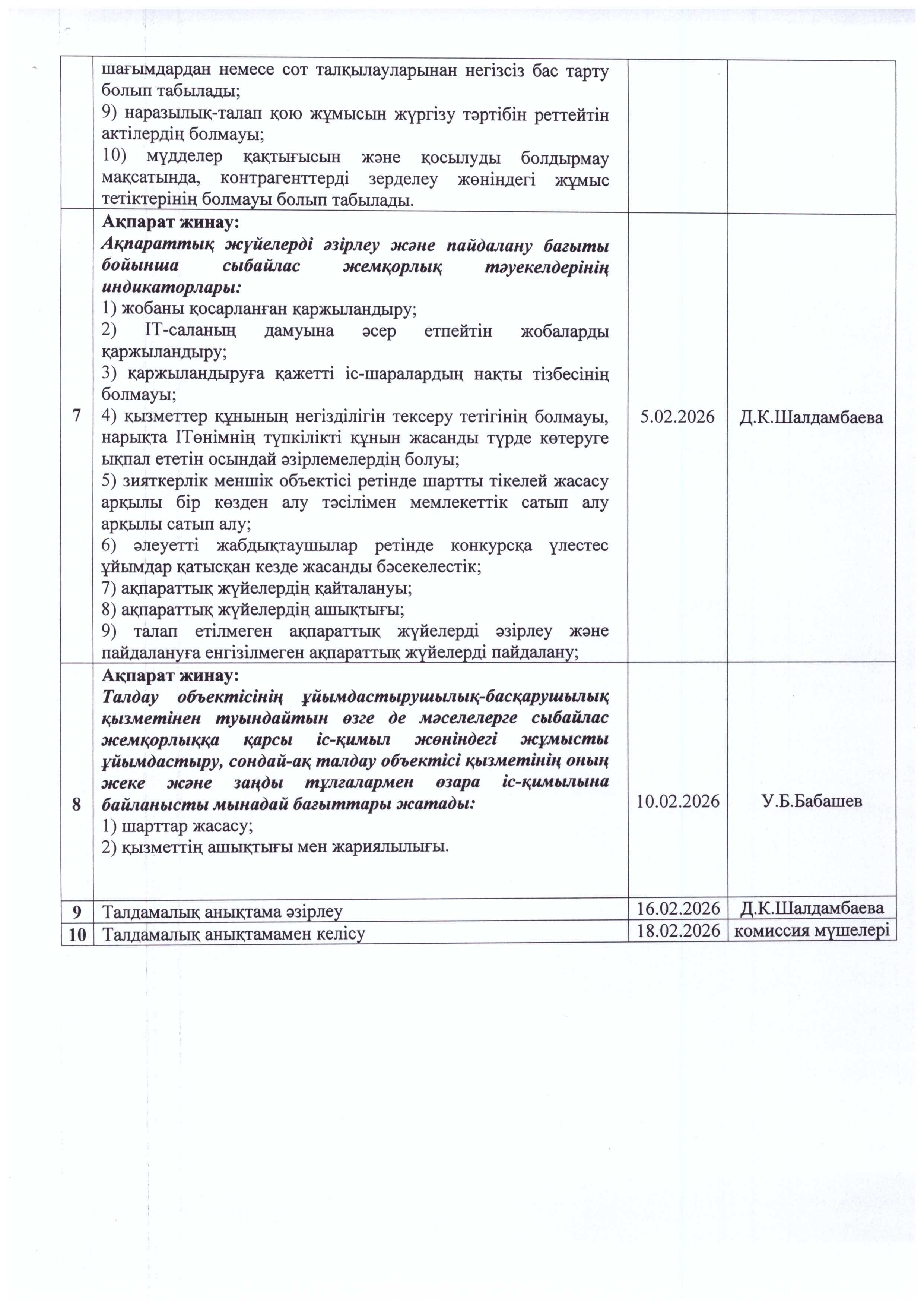 Сыбайлас жемқорлық тәуекелдеріне ішкі талдау жүргізу жөніндегі жұмыс жоспары