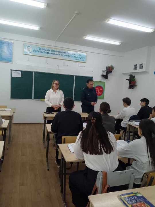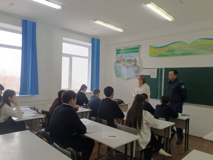 23 февраль 2026 0 1 2 3 4 5 Құқықтық сағаттар Құқықтық сағаттар Құқық бұзушылықтың алдын алу мақсатында мектеп инспекторы Ә. Т. Әсетов пен ДҚТІЖО К. Р. Ескараева 8-10 сынып оқушыларымен әңгіме дәріс өткізді.