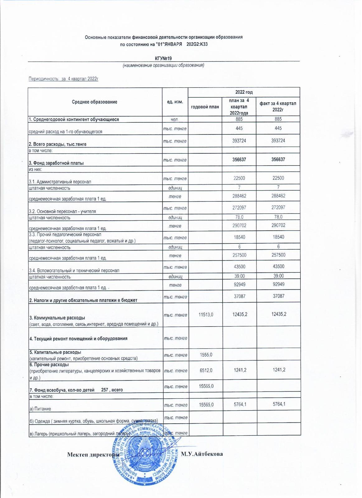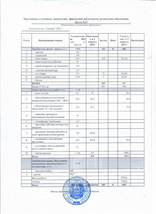 Приложение к основным показателям финансовой деятельности организации образования СШ №19 » СШ №19