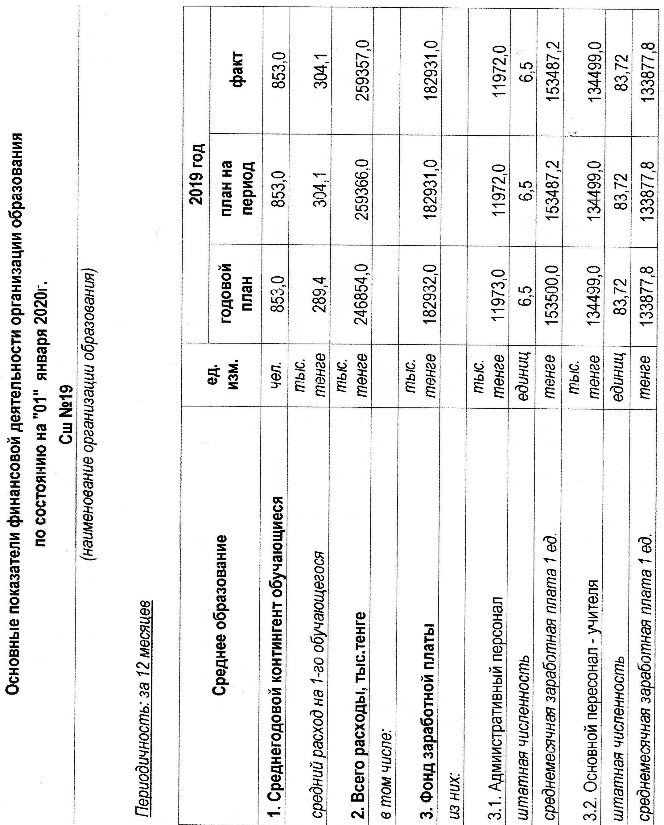 15 январь 2020 0 1 2 3 4 5 Основные показатели финансовой деятельности организации образования по состоянию на 01.01.2020