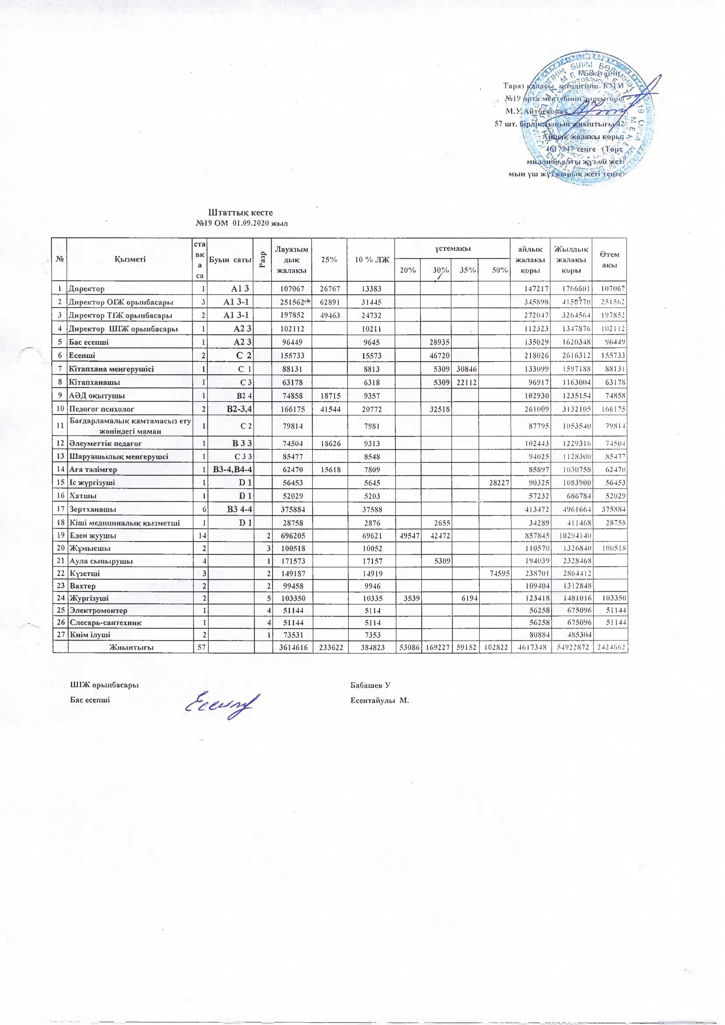 Штатное расписание » СШ №19