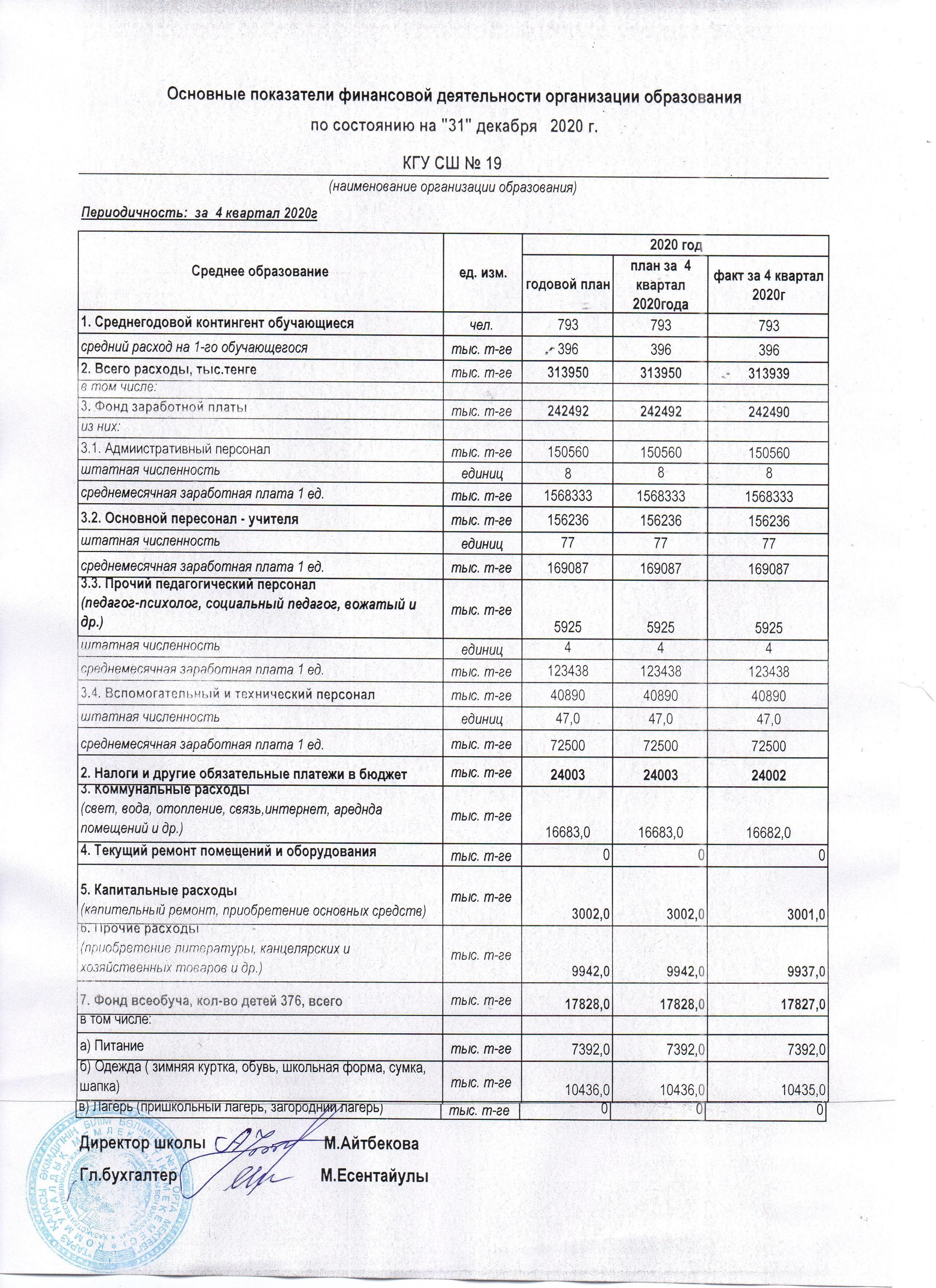 Основные показатели финансовой деятельности организации образования » СШ №19