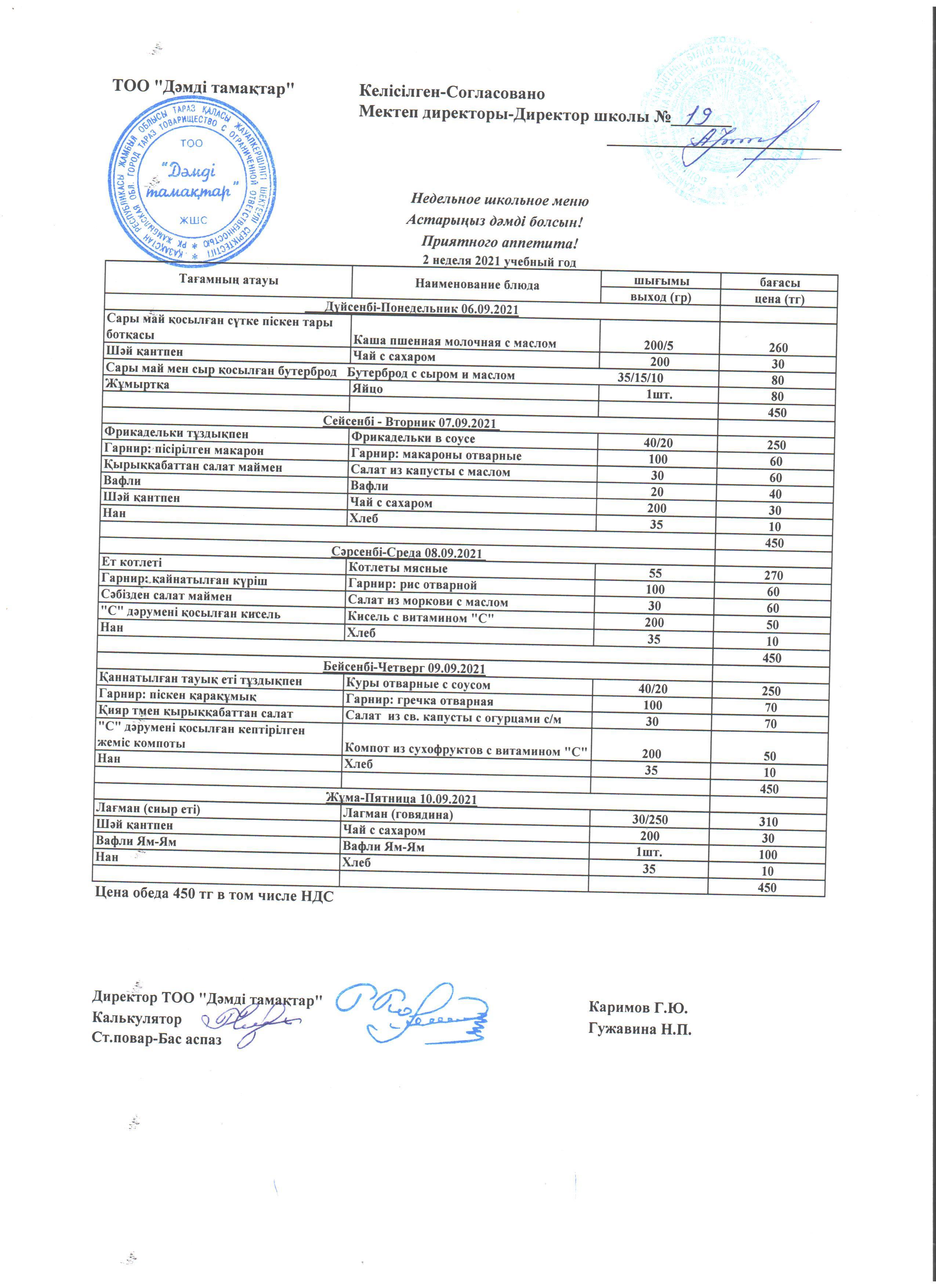 Ас мәзірі 06.09.2021-10.09.2021 жж. » СШ №19