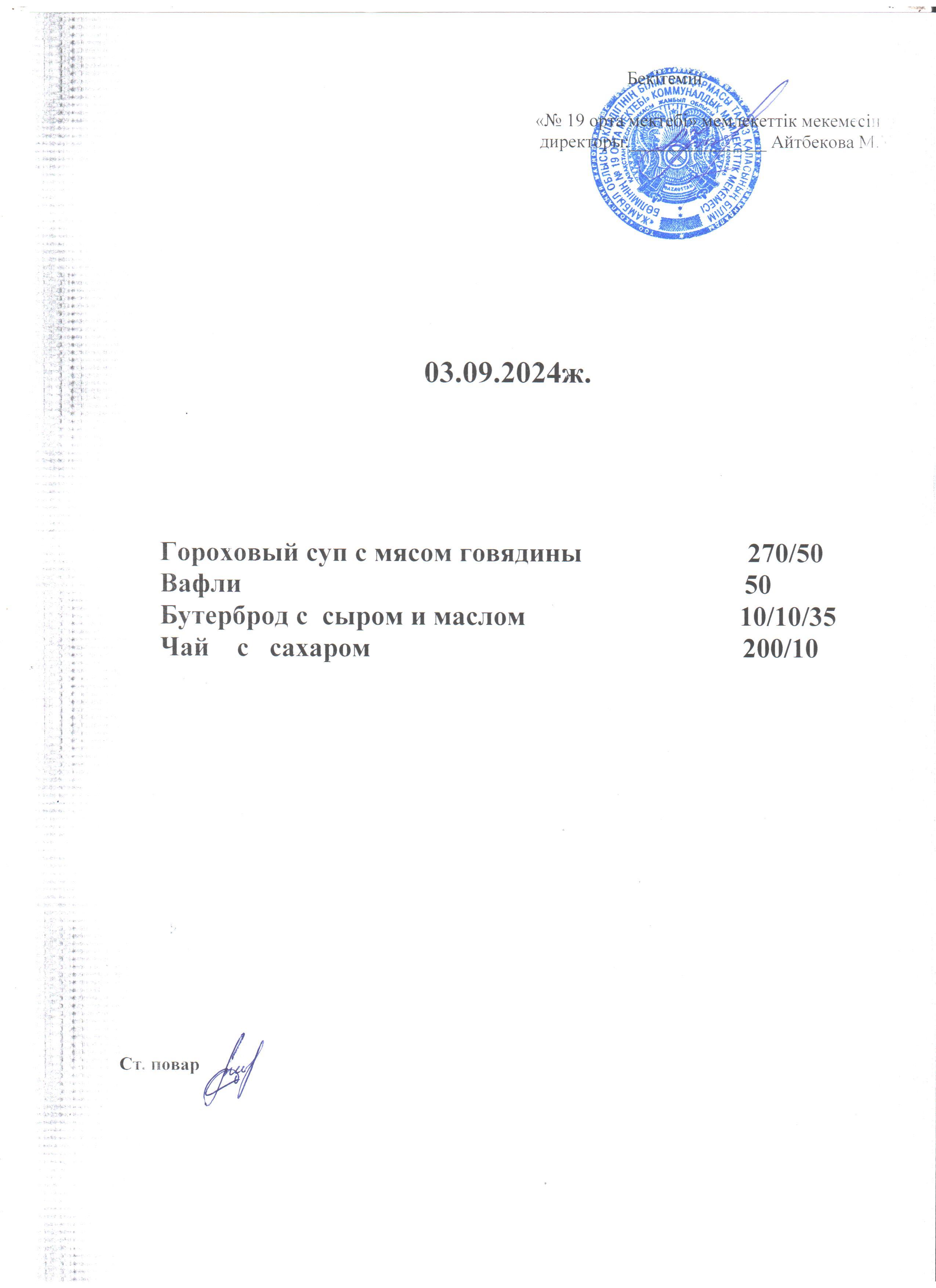 Күндік ас мәзірі 3.09.2024 ж. » СШ №19