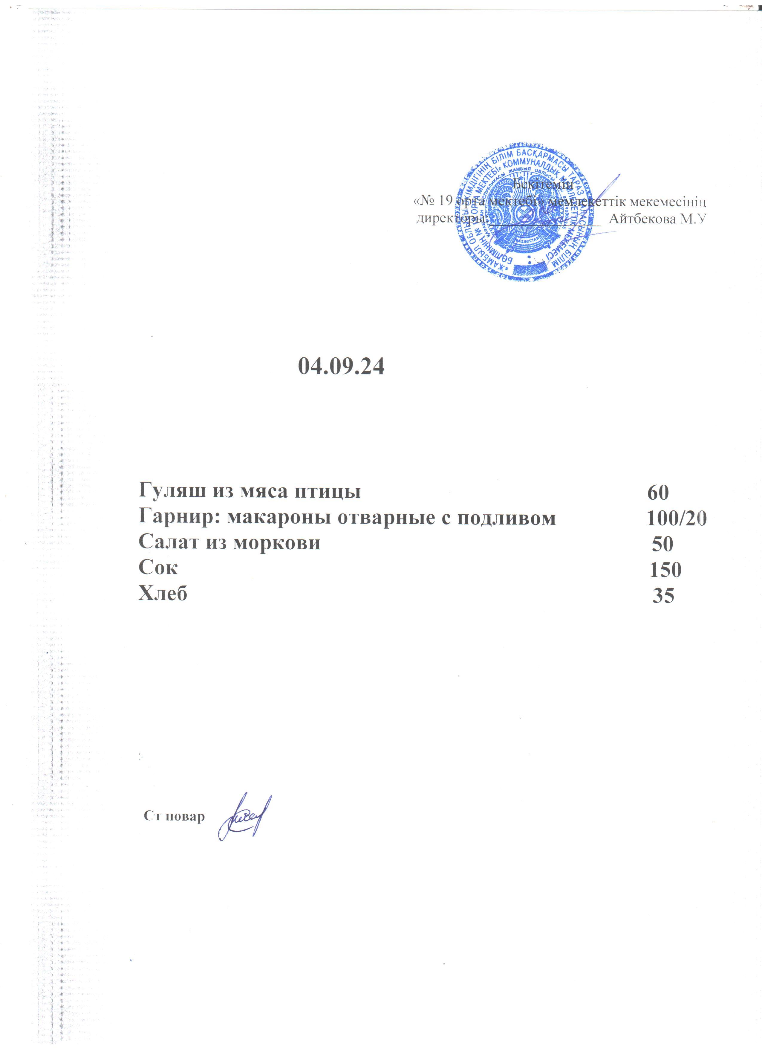 Күндік ас мәзірі 4.09.2024 ж. » СШ №19