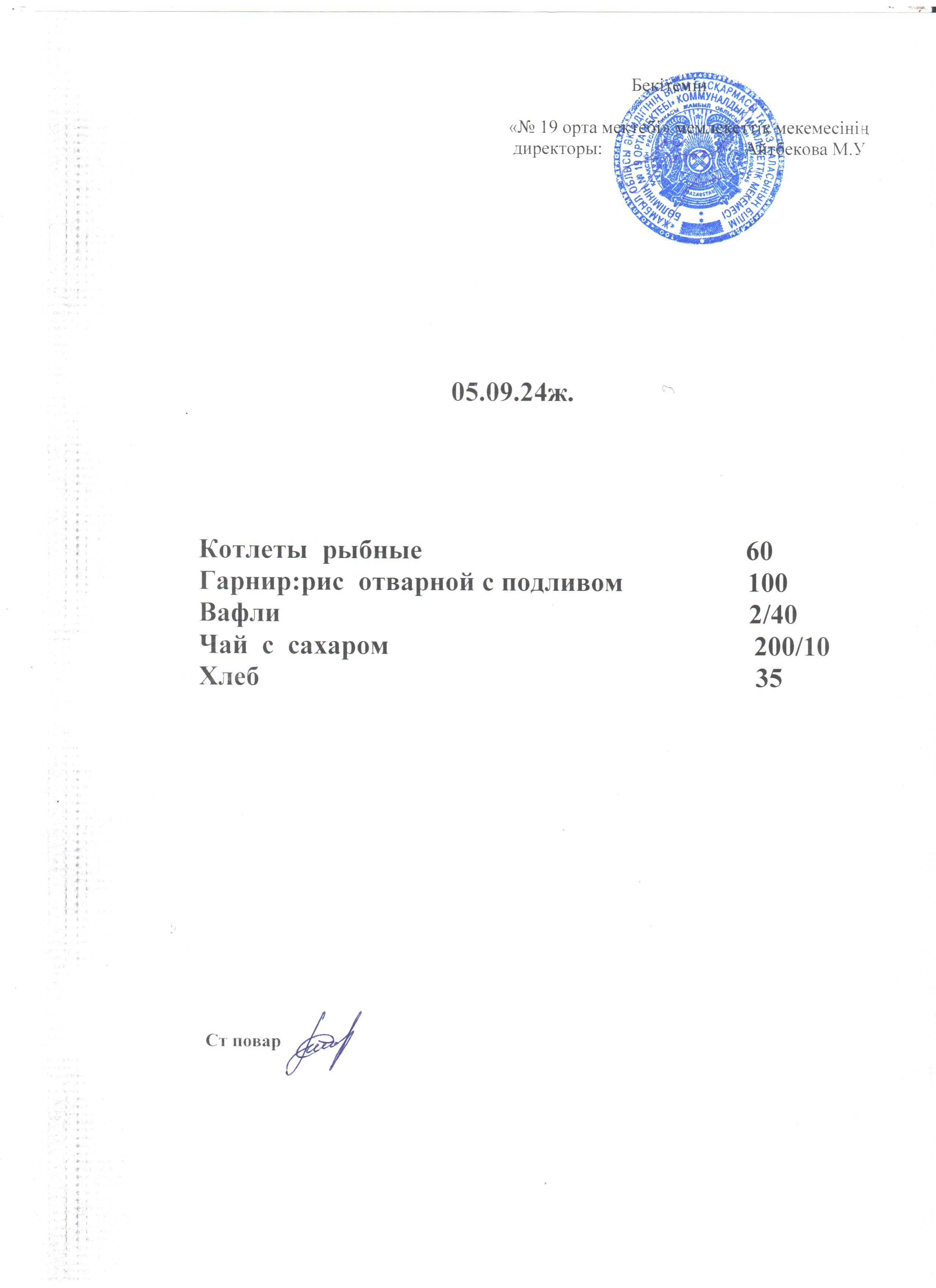 Күндік ас мәзірі 5.09.2024 ж. » СШ №19
