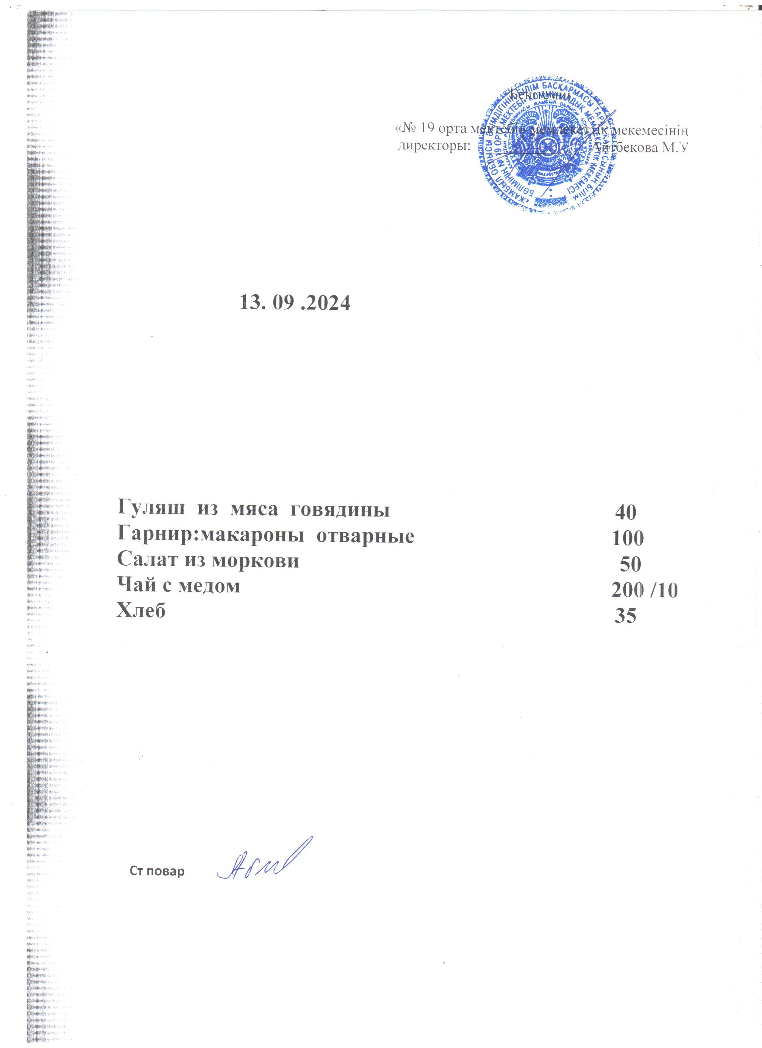 Күндік ас мәзірі 16.09.2024 ж. » СШ №19
