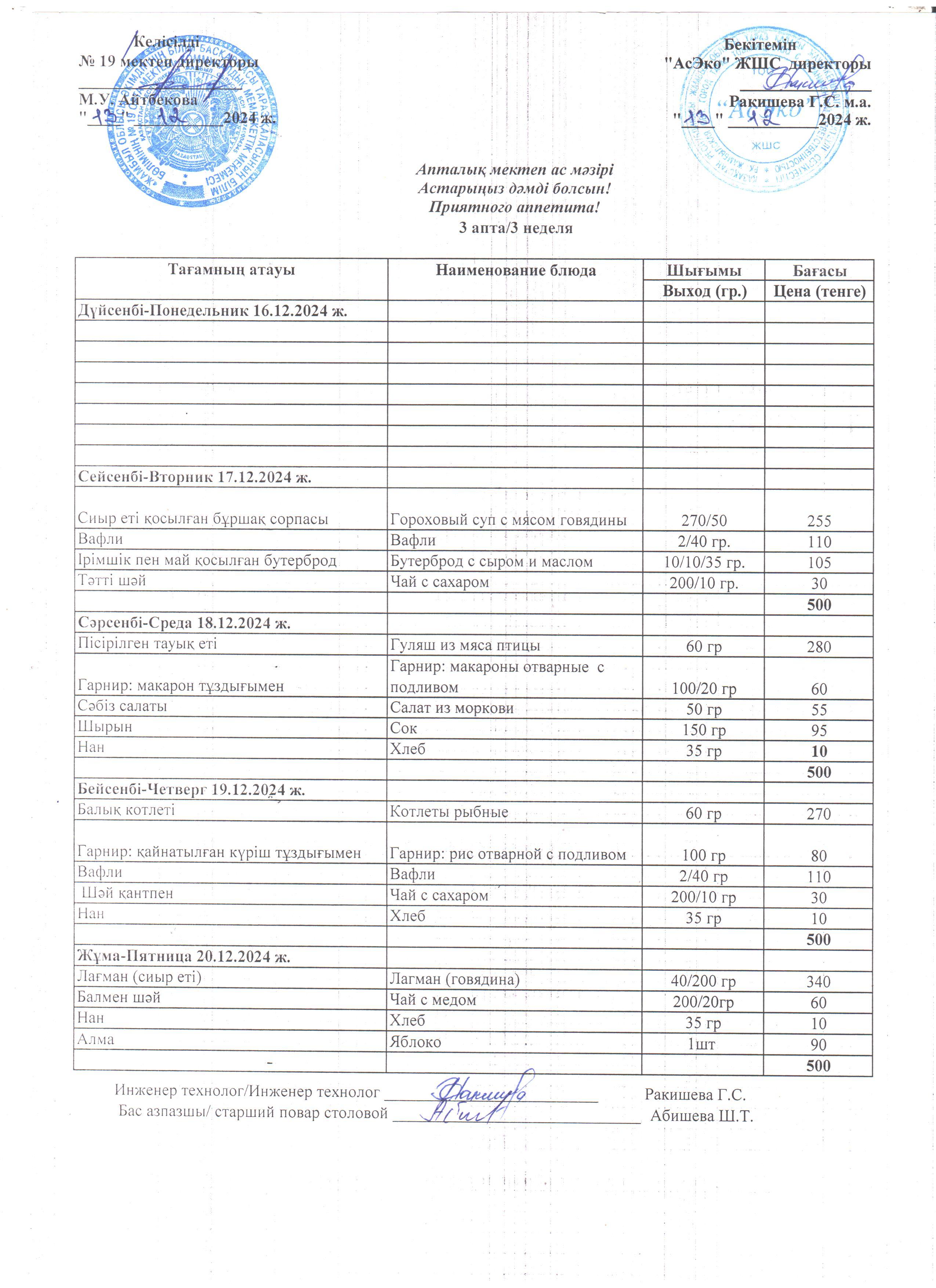 Апталық мектеп ас мәзірі (17.12-20.12.2024 ж.) » СШ №19