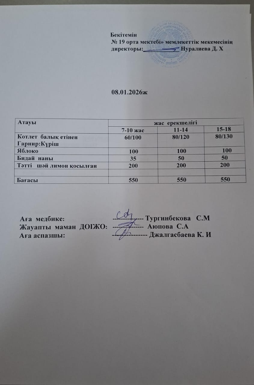 күндік ас мәзірі » СШ №19
