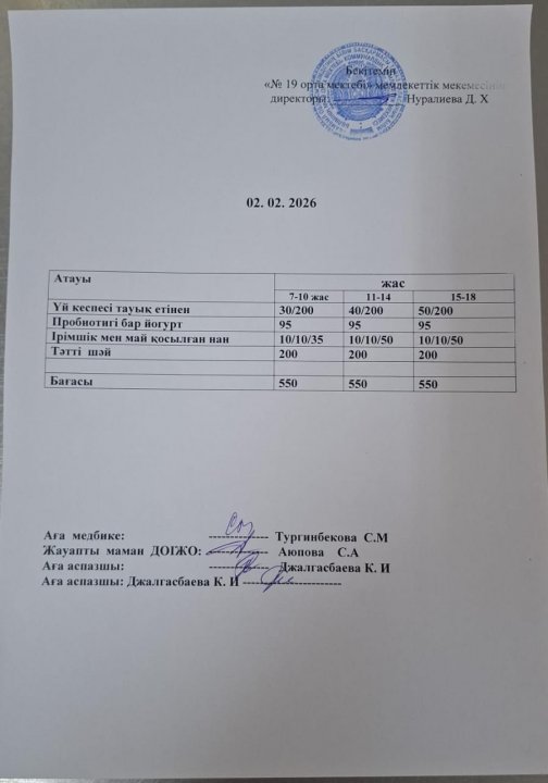 күндік ас мәзірі » СШ №19