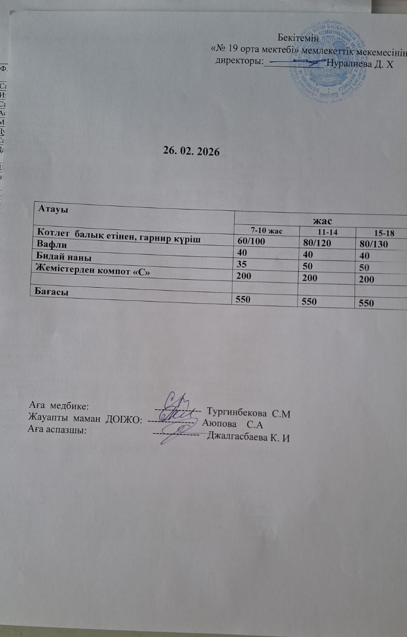 Күндік ас мәзірі » СШ №19