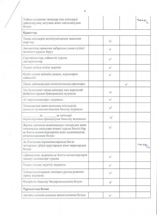 » » » Тамақтану сапасына мониторинг жүргізу актісі №1